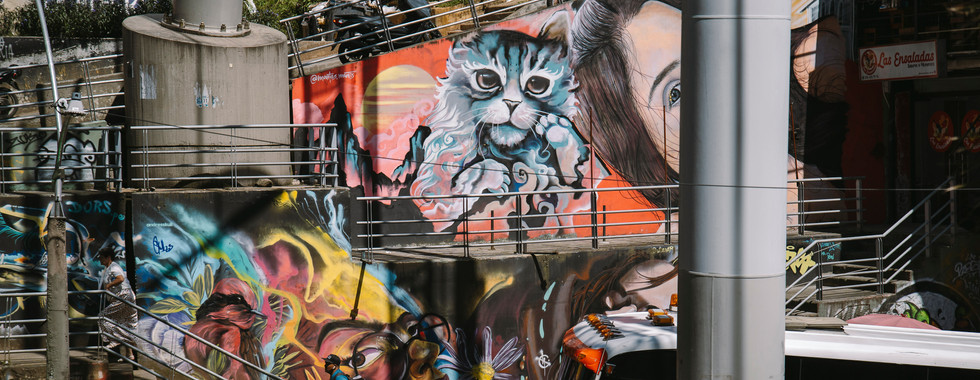 Wir konnten kleine Kunstgalerien, den Ausblick und die Weite der Comuna, ohne viele Touristen, bestaunen. Danach haben wir uns ins Getümmel gewagt, vorbei an den schönsten Graffitis, die ich je gesehen habe, um am Ende mit den Rolltreppen – ja, die haben hier einfach Rolltreppen im Viertel, wie verrückt ist das? – zum Aussichtspunkt zu gelangen.