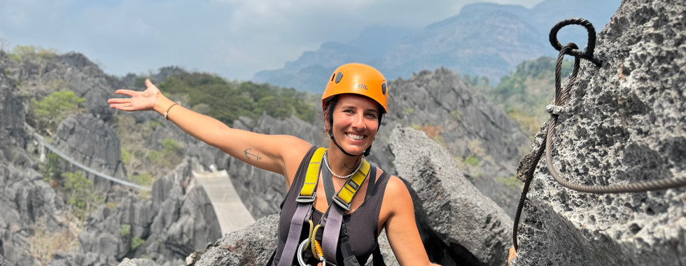 Erster Stopp Xieng Liap Cave: Diese hübsche und wenig bekannte Höhle wird die Abenteuerlustigsten während der Trockenzeit begeistern. Um dorthin zu gelangen, parkten wir vor der Brücke und folgten dem Tipp eines Reisenden den wir am Parkplatz kennenlernten, den kostenfreien Weg auf der linke Seite zu nehmen. Du kannst zu Beginn auch über die Brücke und kommst über einen einfacheren Weg zur der Höhle (Eintritt: 10000 KIP = 0,44 €) Wir kletterten jedochüber die Felsen, bis wir den Eingang fanden.
