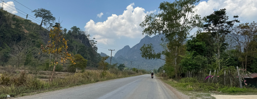 Es war Zeit, den Rückweg anzutreten. Früh morgens brachen wir auf, um die 190 Kilometer zurück nach Thakhek zu fahren. Das war eine ganz schöne Strecke. Wir planten regelmäßige Pausen ein, um unsere Hintern etwas zu entspannen.